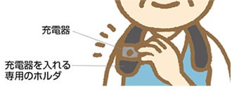 A: 刺激発生装置の上に体外から専用の充電器をのせることで、エネルギーを補充できます。