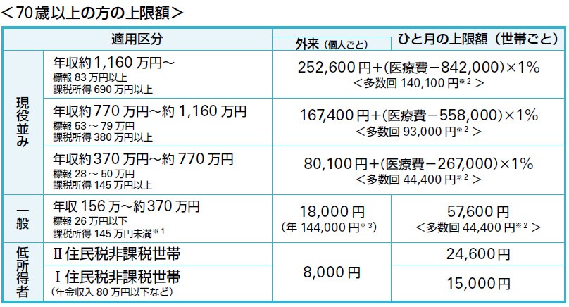 ※2 過去12か月以内に3回以上、上限額に達した場合は、4回目から「多数回」該当となり、上限額が下がります。