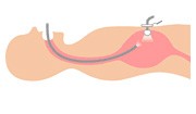 PEGは、口から十分に栄養が取れない患者さんのために、内視鏡(胃カメラ)を使っておなかの壁と胃の壁を通して小さな穴(この小さな穴のことを胃瘻( いろう )といいます)を造り、その穴にチューブを入れる手術です。そのチューブを通して栄養を摂取します。