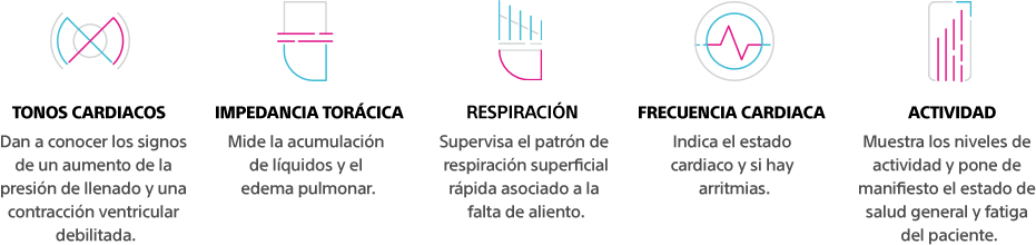 El diagnóstico de insuficiencia cardiaca HeartLogic utiliza varios sensores para realizar un seguimiento de tendencias fisiológicas, los combina en un único índice y envía una alerta proactiva cuando se produce un empeoramiento de la insuficiencia cardiaca1.