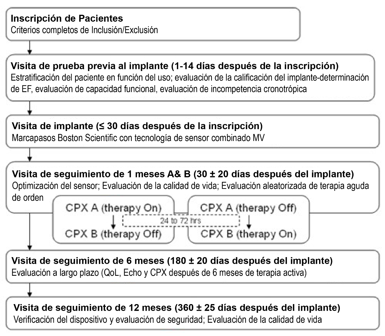 - Evaluar el efecto del tratamiento de estimulación de frecuencia adaptativa (RAP, por sus siglas en inglés) sobre la capacidad funcional en pacientes con insuficiencia cardíaca y una FE preservada