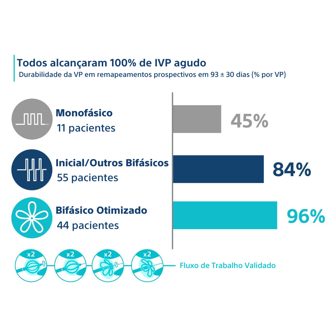 - Com a forma de onda FARAPULSE™ bifásica otimizada e o fluxo de trabalho, houve uma taxa de isolamento de VP de 96% em aproximadamente 3 meses.