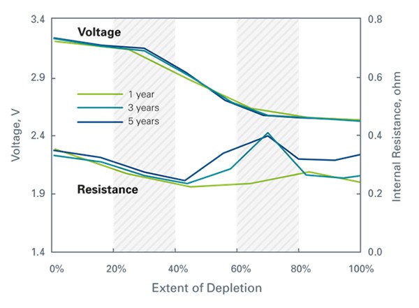 - Anstieg des Widerstands bei der Entladung mit fortschreitender Betriebsdauer führt zu längeren Ladezeiten3