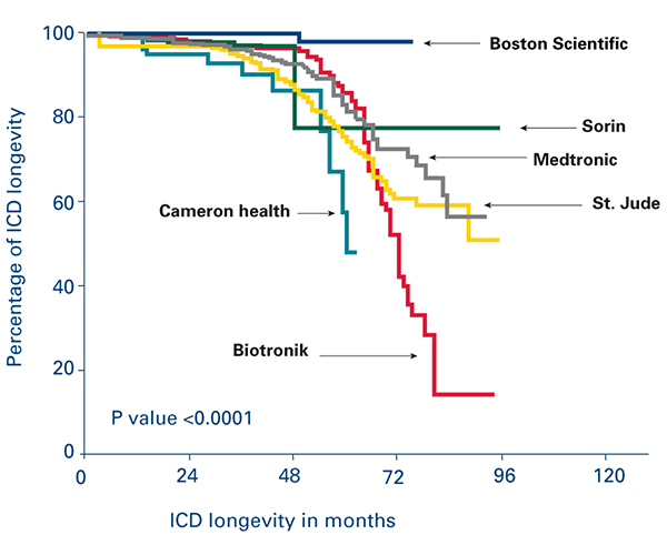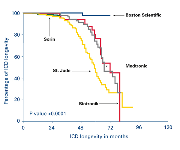 - Nach 2006 war Boston Scientific in Bezug auf die Funktionsdauer von VR-, DR- und CRT-D-Systemen allgemein führend – die Systeme konnten wesentlich länger genutzt werden als die anderer Hersteller.