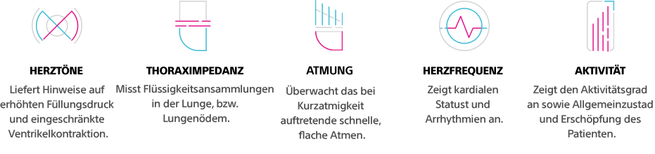 Das HeartLogic Herzinsuffizienz-Diagnostiktool nutzt zahlreiche Sensoren, um physiologische Trends zu verfolgen, fasst diese zu einem Gesamtindex zusammen und warnt proaktiv vor einer möglichen Verschlechterung der Herzinsuffizienz.1