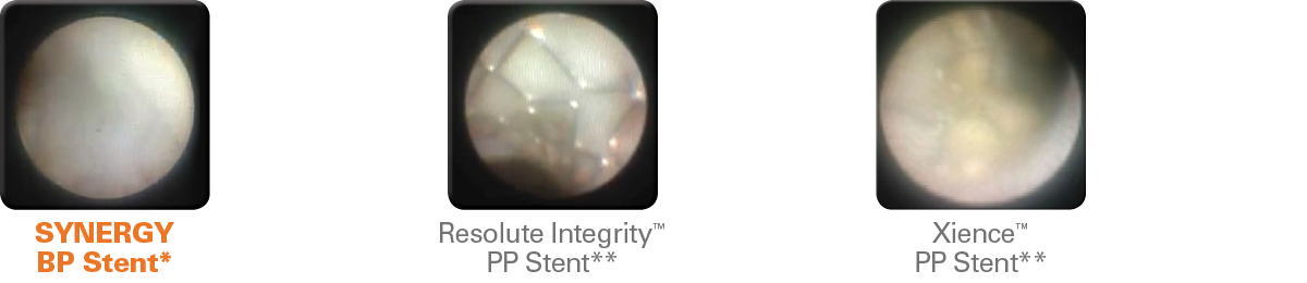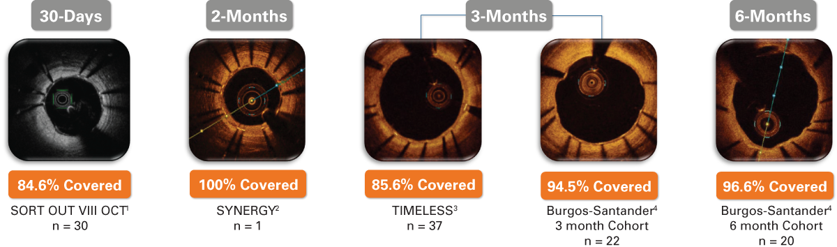El stent BP SYNERGY™ ha demostrado una cobertura completa del puntal del stent desde los 30 días en humanos y mostró un 0% de trombosis del stent en todos estos análisis de OCT.