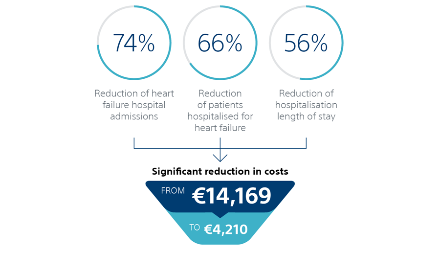 HeartLogic reduces hospitalisations for decompensated heart failure and significantly reduces the costs per patient for the healthcare system, as described in the Heggermont et al publication.¹¹