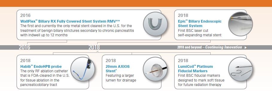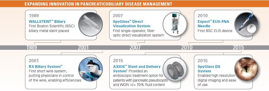 “The evolution of pancreaticobiliary disease management started with simple ductal access and fluoroscopic imaging in the late 1980’s and early 1990’s. At that time, we began developing single-use diagnostic, therapeutic and palliative devices including a comprehensive portfolio for pancreaticobiliary intervention. For most of the 1990’s we focused on wire-guided biliary devices and in early 2000, we introduced the rapid exchange platform which allowed physicians to control the wire for biliary access. The RX Biliary System™ helped increase efficiencies which led to facilitating shorter procedures and potentially reduced risk of complications for patients[1].