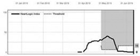 On May 20th 2020 (blue line) HeartLogic triggered an alert and…