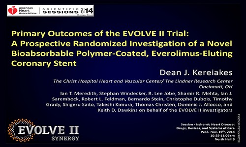 Dean Kereiakes: Sure. The EVOLVE first human use was randomized, and it had a primary angiographic endpoint, late lumen loss at 6 months. It proved non-inferiority for late lumen loss and angiographic endpoint in 6 months between the SYNERGY and the Promus Element stent. It wasn't large enough to have a clinical endpoint. This, for regulatory approval, US FDA approval, had to been large enough and it's powered to show non-inferiority at target lesion failure which is a composite endpoint in cardiac related death, target vessel-related myocardial infarction, and clinically indicated target lesion revascularization, those three components. It is adequately powered to show non-inferiority at one year.