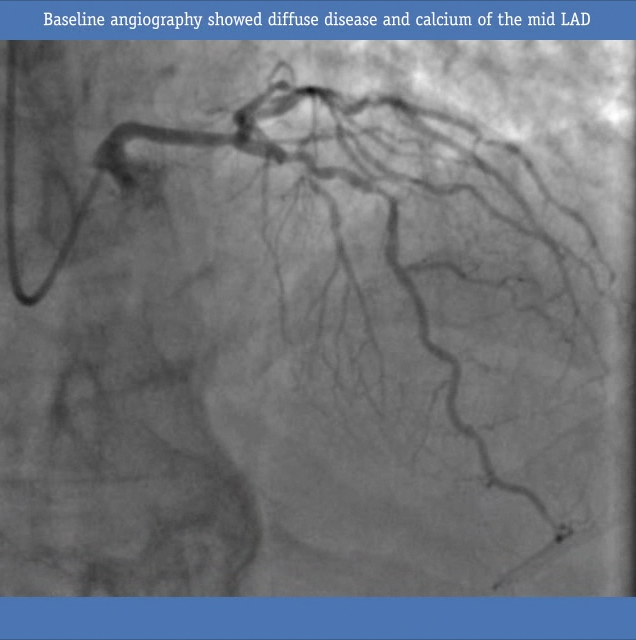 - Baseline angiography showed diffuse disease and calcium of the mid LAD