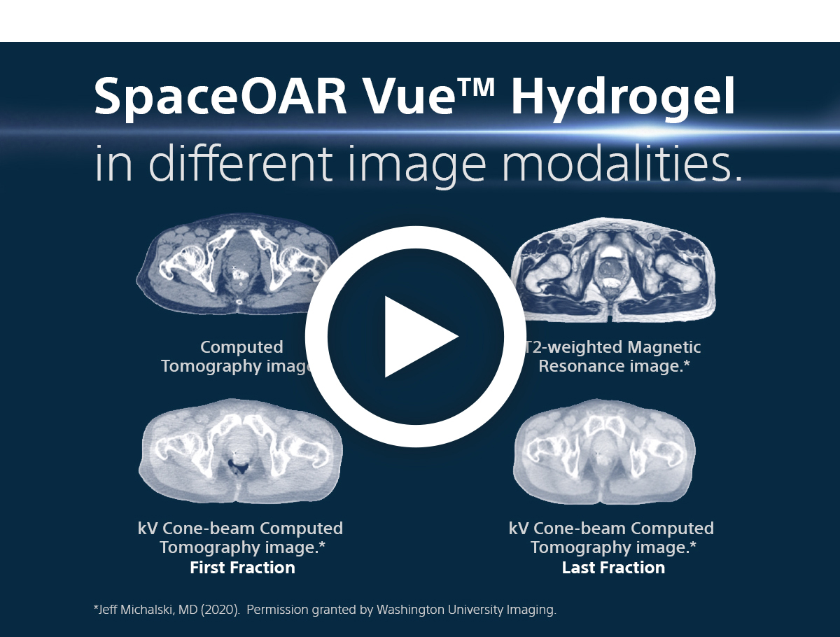 SpaceOAR and SpaceOAR Vue Hydrogels are intended to temporarily position the anterior rectal wall away from the prostate during radiotherapy for prostate cancer and in creating this space it is the intent of SpaceOAR and SpaceOAR Vue Hydrogels to reduce the radiation dose delivered to the anterior rectum. SpaceOAR and SpaceOAR Vue Hydrogels contain Polyethylene Glycol (PEG). SpaceOAR Vue Hydrogel contains iodine. Prior to using these devices, please review the Instructions for Use for a complete listing of indications, contraindications, warnings, precautions and potential adverse events. As with any medical treatment, there are some risks involved with the use of SpaceOAR and SpaceOAR Vue Hydrogels. Potential complications associated with SpaceOAR and SpaceOAR Vue Hydrogels include, but are not limited to: pain associated with SpaceOAR and SpaceOAR Vue Hydrogels injection, pain or discomfort associated with SpaceOAR and SpaceOAR Vue Hydrogels, local inflammatory reactions, infection (including abscess), urinary retention, urgency, constipation (acute, chronic, or secondary to outlet perforation), rectal tenesmus/muscle spasm, mucosal damage, ulcers, fistula, perforation (including prostate, bladder, urethra, rectum), necrosis, allergic reaction (localized or more severe reaction, such as anaphylaxis), embolism (venous or arterial embolism is possible and may present outside of the pelvis, potentially impacting vital organs or extremities), syncope and bleeding. The occurrence of one or more of these complications may require treatment or surgical intervention. URO- 989811-AB MAR 2022