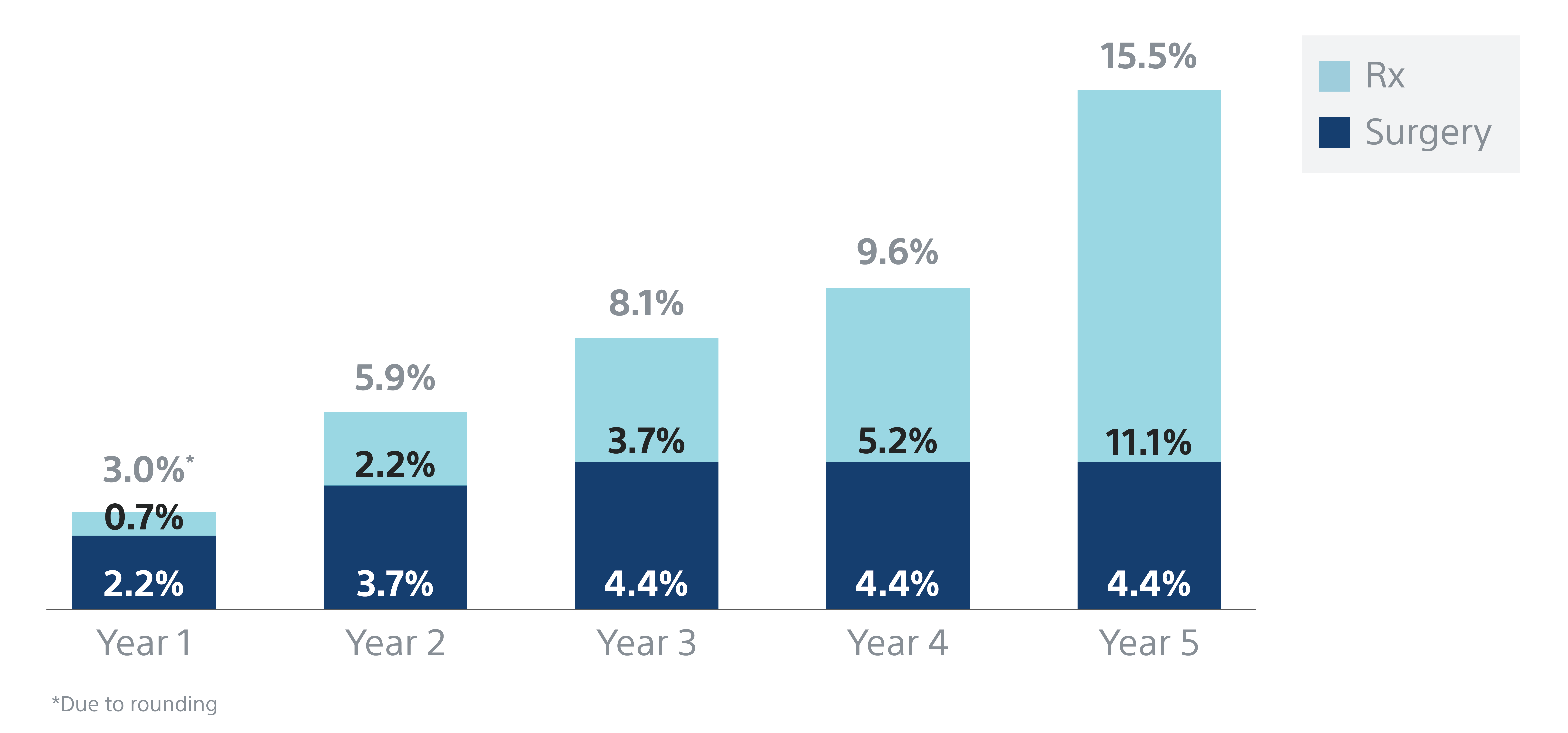 Rezūm II Clinical Trial Retreatment Rates through Five Years1,6