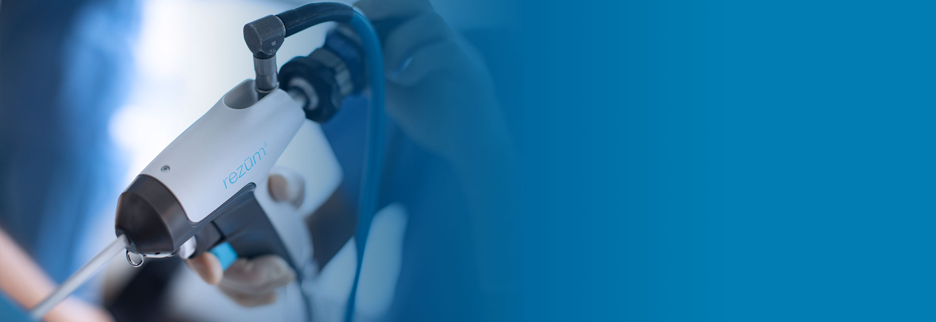 All treatments have inherent and associated risks. The Rezūm System is intended to relieve symptoms, obstructions, and reduce prostate tissue associated with benign prostatic hyperplasia (BPH). It is indicated for men with a prostate volume ≥ 30 cm3. The Rezūm System is also indicated for treatment of prostate with hyperplasia of the central zone and/or a median lobe. Potential risks include but not limited to painful urination (dysuria), blood in the urine (hematuria), blood in the semen (hematospermia), decrease in ejaculatory volume, suspected urinary tract infection (UTI), and urinary frequency, retention or urgency. You should talk with your doctor about benefits and risks before moving forward with any treatment option.