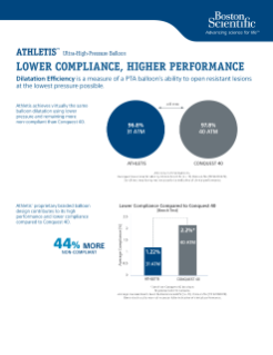 Dilatation Efficiency is a measure of a PTA balloon’s ability to open resistant lesions at the lowest pressure possible.