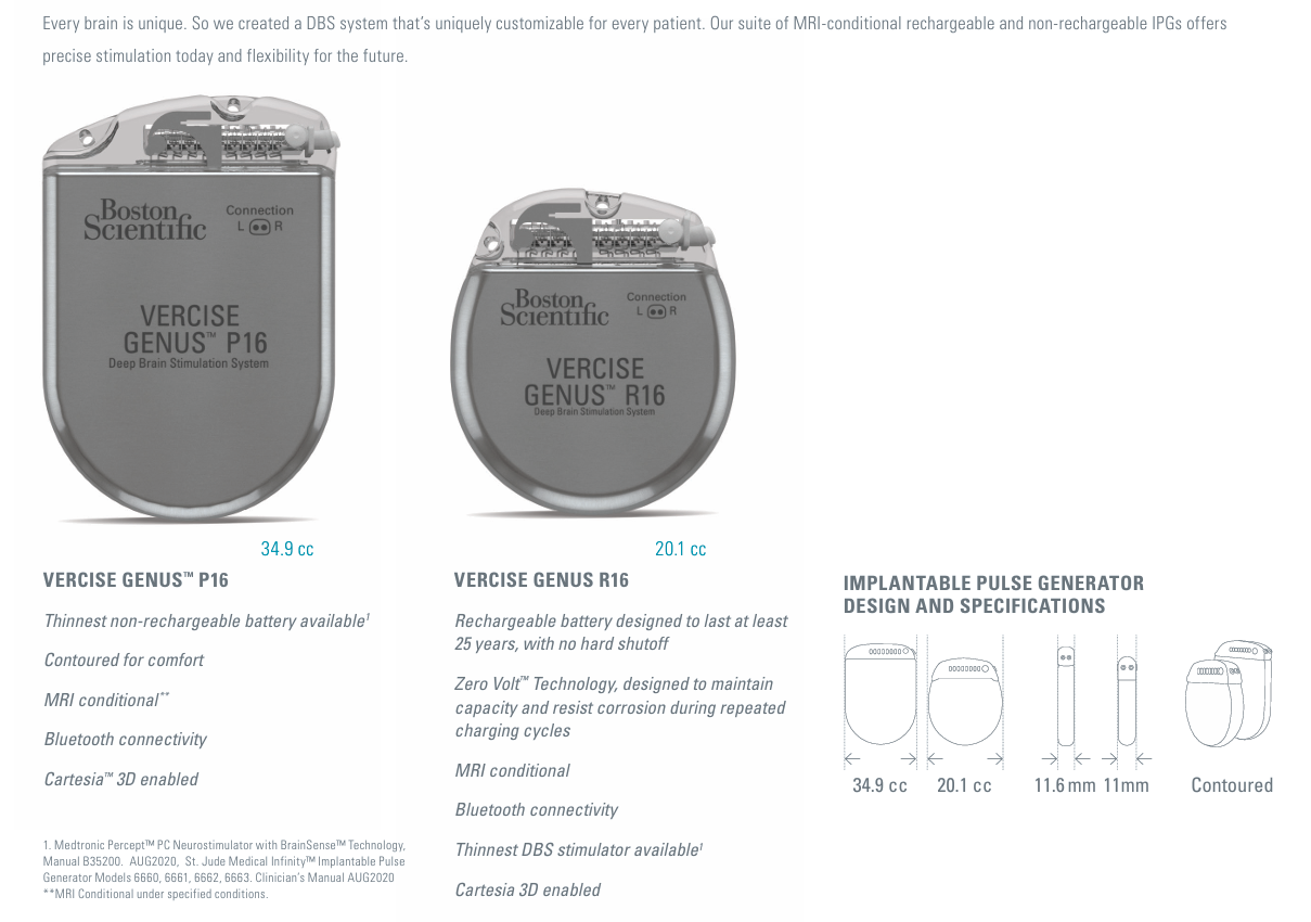 ![]() | The Vercise Genus DBS system's small, thin IPGs are now equipped with Bluetooth connectivity to provide enhanced communi- cation and ease of use. |