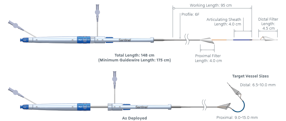 | Indications for Use | The SENTINEL™ System is indicated for use as an embolic protection device to capture and remove embolic material (thrombus/debris) that may enter the cerebral vascular system during endovascular procedures. |