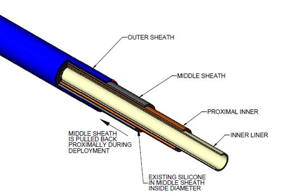 InnovaTM has one delivery system with dual deployment options : one by rolling the thumbwheel and the other one by grasping the manual pull grip. The stent placement and visibility are facilitated by tantalum markers on the stent and a radiopaque tip.