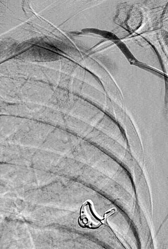 Thrombectomy of occlusion of left brachiocephalic fistula
