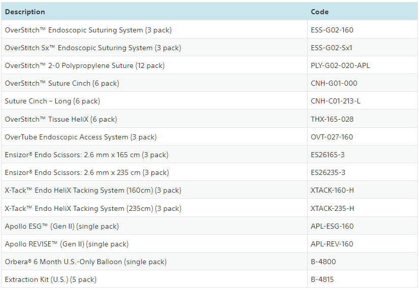 Beginning November 6, 2023, all Apollo Endosurgery products will be distributed via Boston Scientific distribution processes.