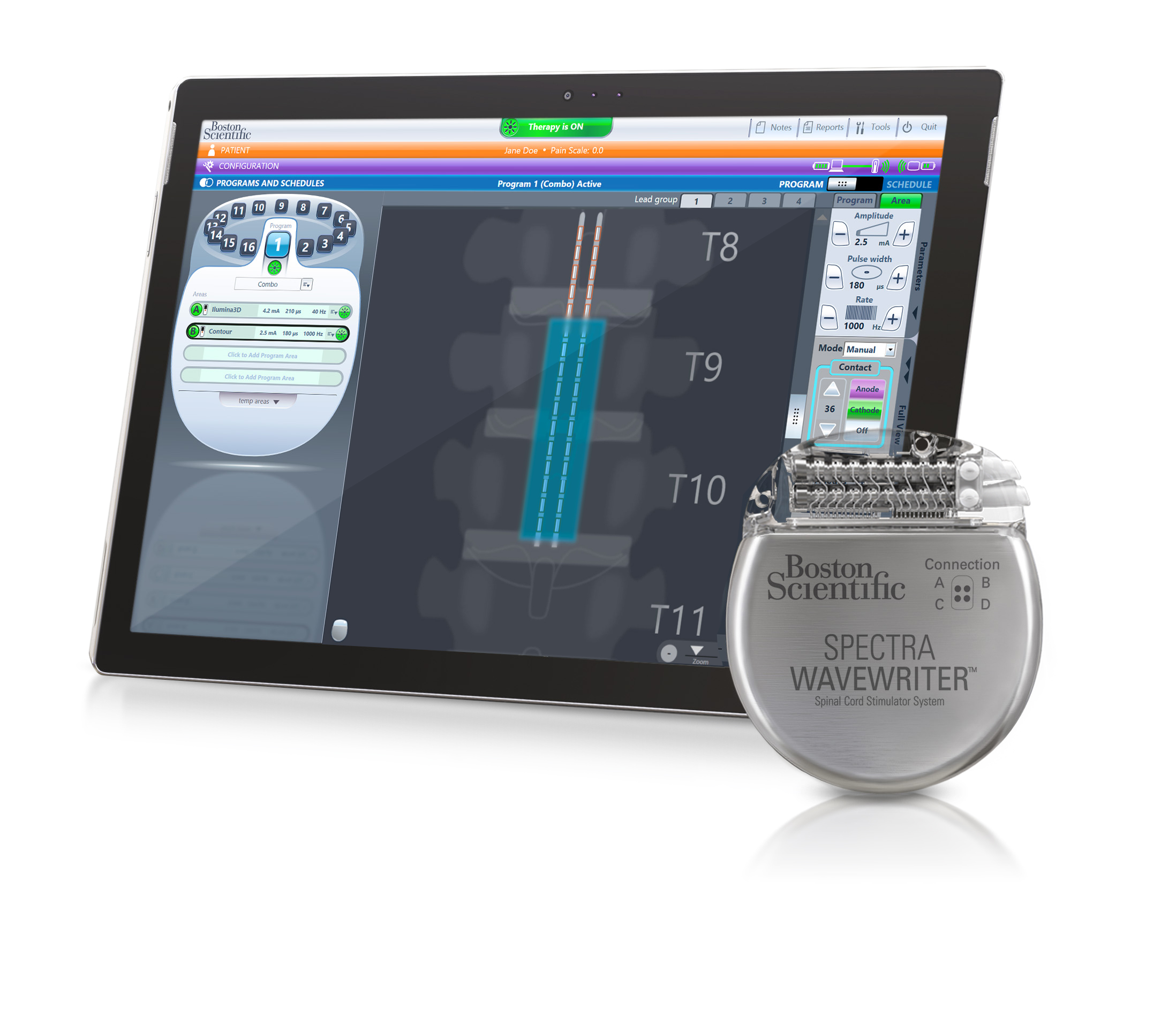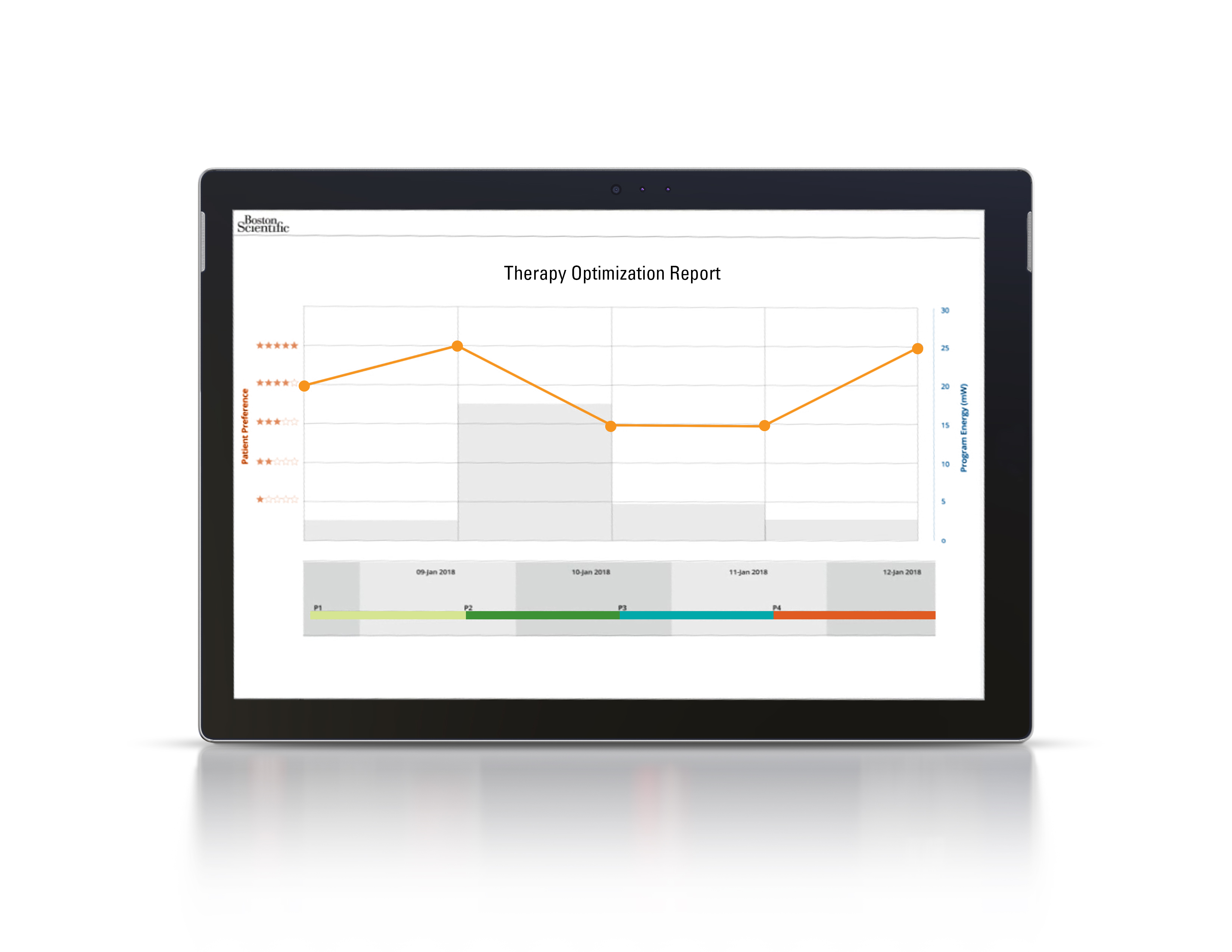 Programming screen showing simulated patient report