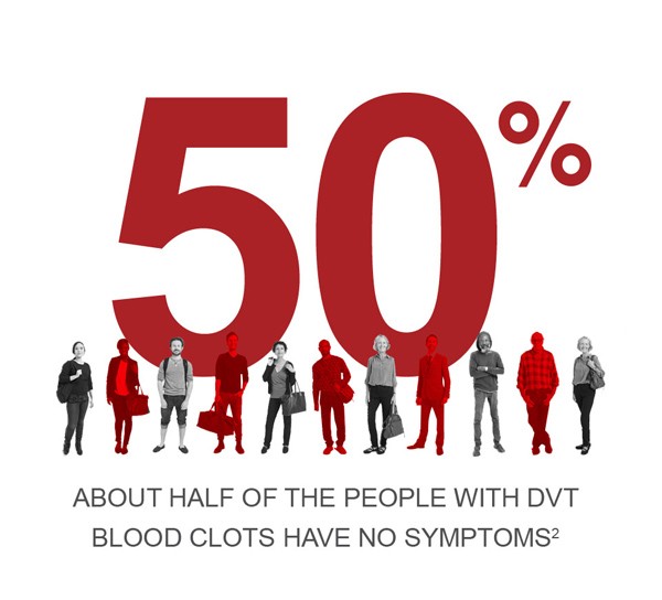 Know the signs of DVT and visit your doctor regularly if you are at high risk. Awareness and education are important when it comes to DVT because many patients experience few symptoms. In fact, 50 percent of people with DVT have no symptoms at all.1 Symptoms you may experience include: