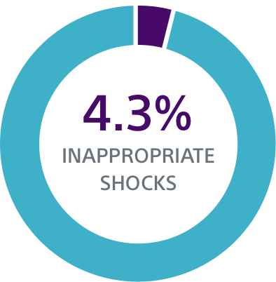 1. In the UNTOUCHED study a subsequent sub-analysis demonstrated that the inappropriate shock rate with SMART Pass On was 1.8% at 1 year for EMBLEM™ S-ICDs. This is the lowest reported inappropriate shock rate for S-ICD, despite a cohort with more left ventricular dysfunction and heart failure.2,3