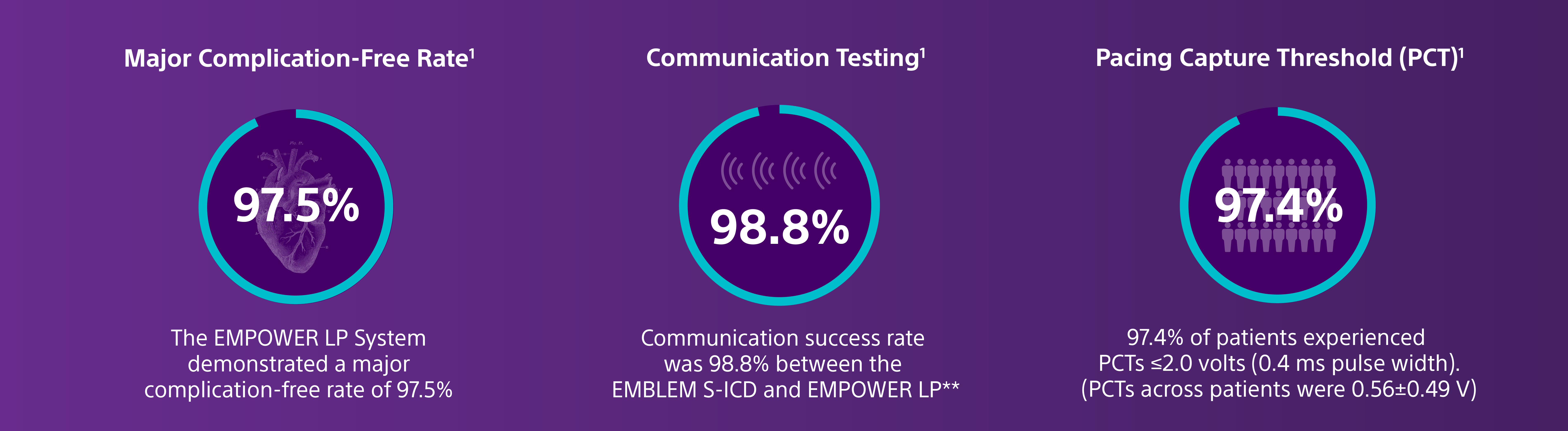The MODULAR ATP trial enrolled patients with significant structural heart disease and implantation of the EMPOWER LP was successful in 100% of patients.1,8