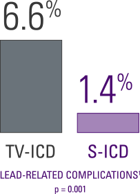 - Data showed a statistical difference in lead-related complications, with TV-ICD patients experiencing more than 4 times as many as S-ICD patients did.2