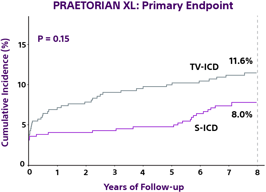 Data from the PRAETORIAN trial confirmed that the S-ICD can be the preferred therapy choice over the TV-ICD for protection from sudden cardiac death. The S-ICD offers comparable performance for the majority of ICD-indicated patients who do not have a need for pacing, while avoiding the serious complications associated with TV-ICDs such as serious infections and lead-related complications.
