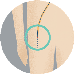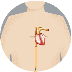 Step 1To implant the device, your doctor inserts a narrow tube into a vein in your upper leg. |