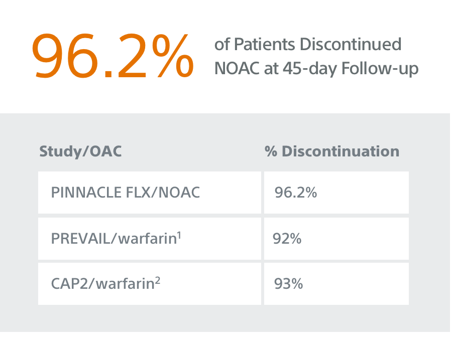 - Inclusion/exclusion criteria is consistent with WATCHMAN clinical study inclusion/exclusion criteria. Patients must be eligible for short-term NOAC vs warfarin in previous clinical studies.