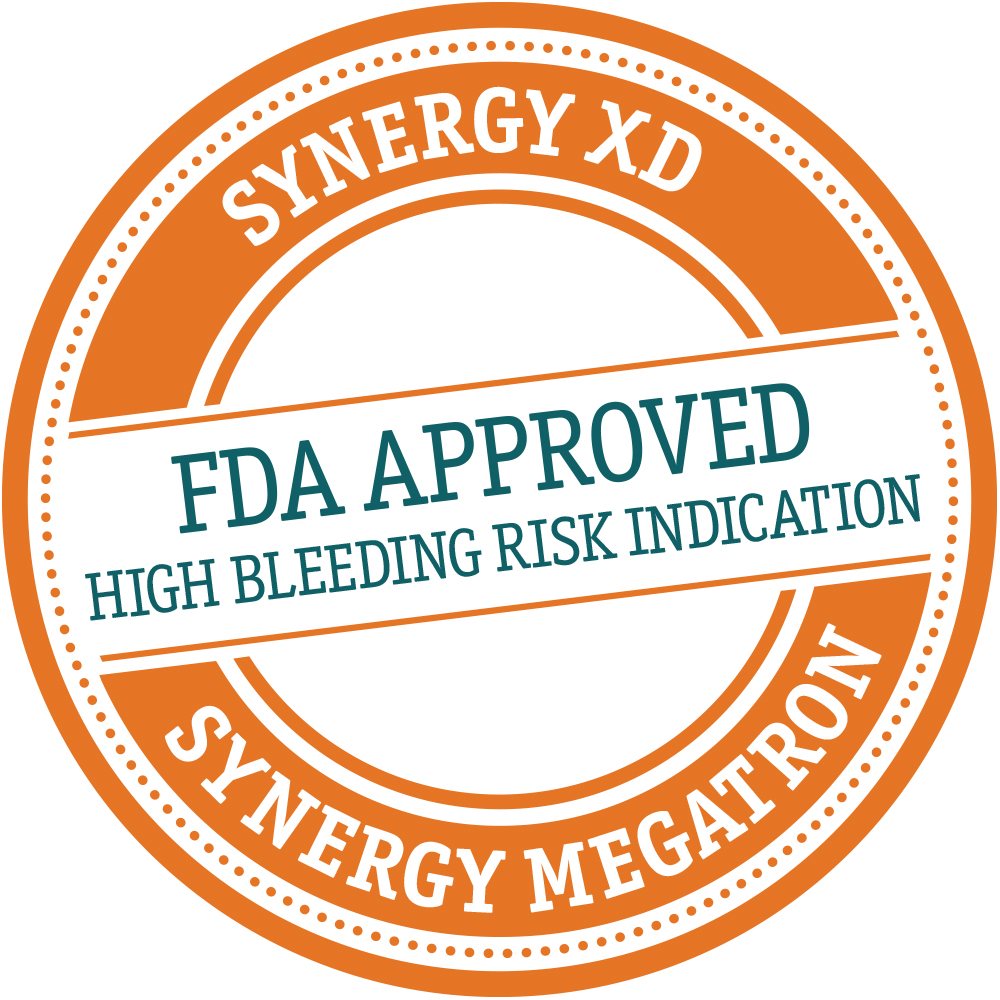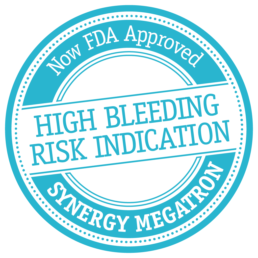 The SYNERGY MEGATRON BP Stent can be safely used in conjunction with shortened DAPT in patients at high risk for bleeding (HBR), based on the results from the EVOLVE Short DAPT Trial.‡‡ This trial data, in conjunction with the HBR indication, provides important evidence to inform decisions about DAPT duration for this patient subset.