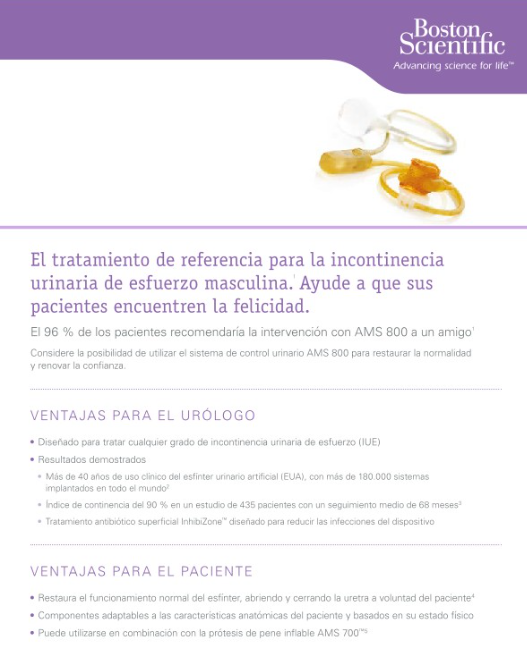 En septiembre de 2016, The Journal of Urology publicó Calidad de vida a largo plazo y resultados funcionales entre implantes de esfínteres urinarios artificiales primarios y secundarios en hombres con incontinencia urinaria de esfuerzo.