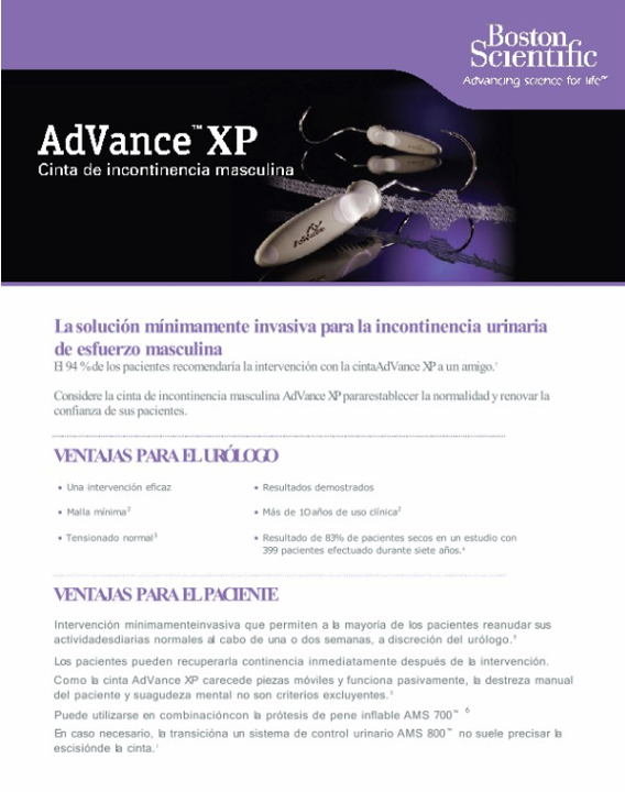 En enero de 2021, Urologia Internationalis publicó Resultados a cinco años de un ensayo multicéntrico prospectivo: AdVance XP para la incontinencia posprostatectomía en pacientes con factores pronósticos favorables.