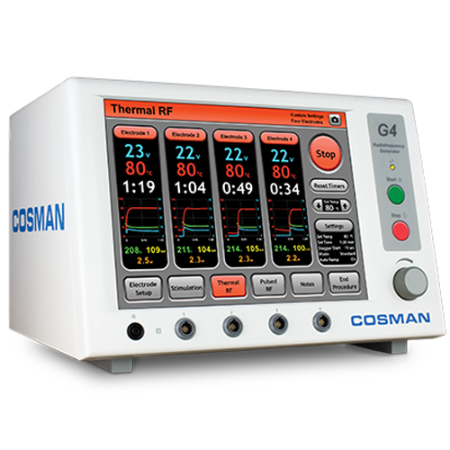 Desarrollado por la familia Cosman, pioneros en el campo de la ablación por radiofrecuencia, el Generador de RF G4 le da la posibilidad de elegir el mejor tratamiento para sus pacientes. Diseñado para ofrecer resultados consistentes y confiables, ofrece una amplia gama de opciones de tratamiento en una interfaz fácil de usar.