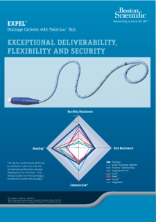 La experiencia de más de 25 años en drenaje percutáneo ha permitido a Boston Scientific redefinir el formato estándar con el catéter de drenaje Expel™. Compruebe la resistencia a deformaciones y la flexibilidad sin precedentes de nuestro nuevo material patentado Flexithane™ y la simplicidad de nuestro conector Twist-Loc™ a prueba de manipulaciones.