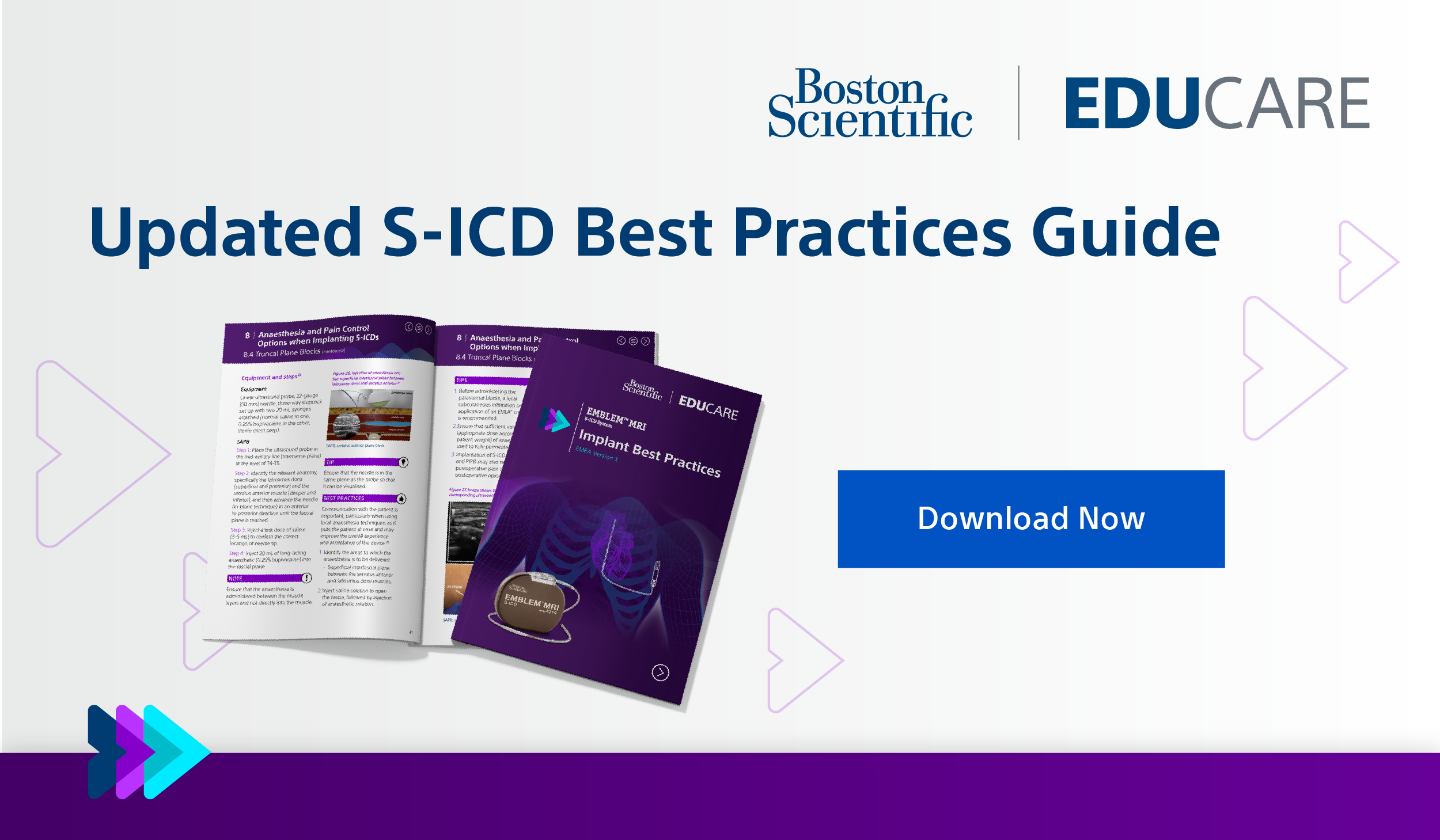 Creado en colaboración con médicos líderes y expertos clínicos, esta guía Best Practices cubre las mejores prácticas en la técnica de implantación de S-ICD desde la preparación, colocación del sistema, test de desfibrilación y recambios.