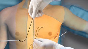 NOTA: Durante la preparación y la colocación de los paños quirúrgicos y antes de realizar la primera incisión, se recomienda usar la fluoroscopía para garantizar la colocación adecuada del dispositivo y el electrodo en relación con el corazón.
