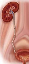 体内の尿路(おしっこの通り道)に入れる管(チューブ)のことです。一般的には、尿路結石手術後に留置されます。ステントを留置することで、おしっこの通過障害などの深刻な合併症のリスクを低減します。