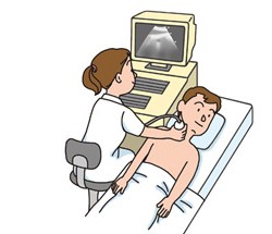頚動脈の狭窄を診断するための最も一般的な方法で、主に最初に受ける検査です。超音波を利用し、狭窄の度合い(狭窄率)や、血液の流れを調べる検査ですが、造影剤を使わないため、体にやさしい検査法です。しかし、石灰化が強い病変では正確な画像を得にくいという欠点もあります。
