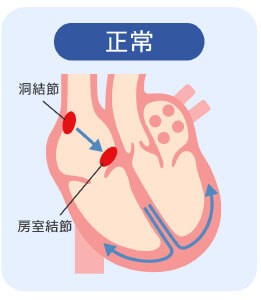 正常な心臓では、洞結節で規則正しく電気信号が発生し、房室結節を介して心臓内に正しく伝わることで拍動のリズムが保たれます。この電気信号に異常が起こると、一時的に拍動のリズムが乱れて不整脈になります。そのタイプはさまざまで、緊急で治療が必要な不整脈や要経過観察の不整脈などがあります。