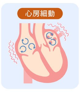 いろいろな不整脈のなかでも、心房細動は脈が速くなる頻脈性不整脈です。心臓の上部にある心房が震えるように細かく動くことで脈が速くなります。