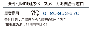 - 「条件付MRI対応植込み型機器お問合せ窓口(患者様用)」0120-953-670(受付時間:月曜日~金曜日9:00-17:00 年末年始および祝日を除く)