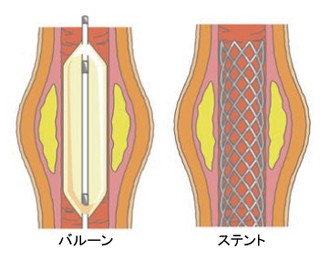 狭くなった部分をバルーンという風船のような器具で、血管の内側から拡げたりステントという金属の管を入れる治療があります。