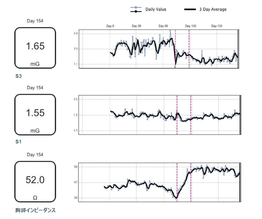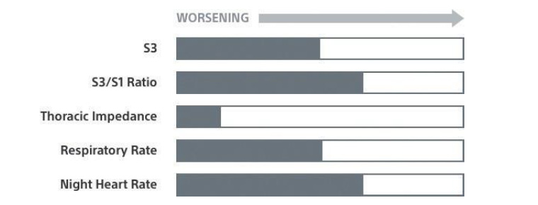 注記:現時点でHeartLogic 機能が提示する情報と心不全増悪兆候との関係は確立していない。HeartLogic アラートが発現した際は、患者の状態や他の指標とあわせて総合的に 評価した上で、治療の要不要及び治療方針を決定すること。