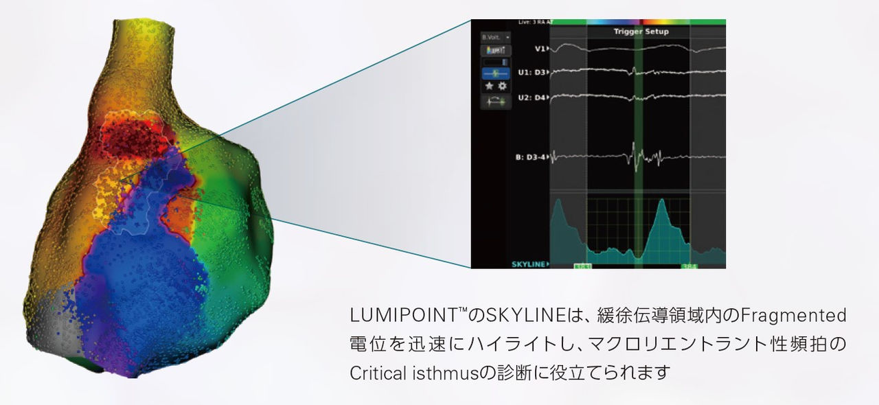 またLUMIPOINT™ソフトウェアモジュールは、マッピングチャンバー内の全興奮領域から頻拍回路を迅速に絞り込むために役立てられる各種機能を備えています