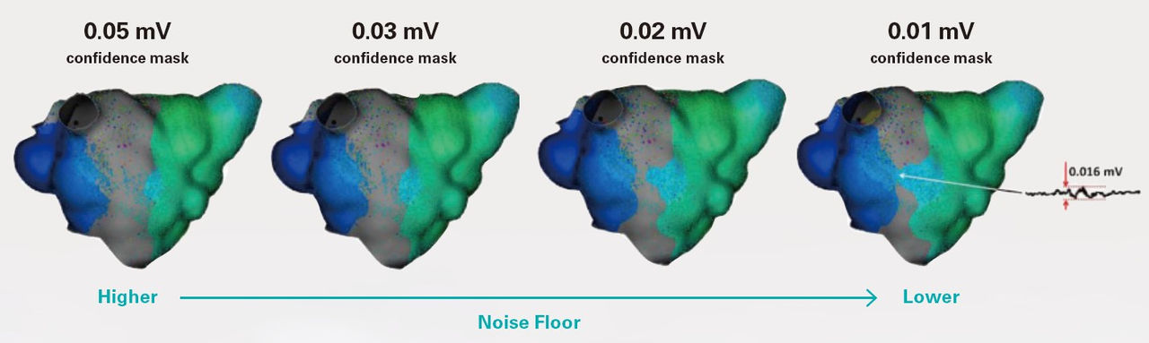 OPAL HDx™ マッピングシステムの非常に低いノイズフロア設計により、重度に障害された組織においても興奮伝播の視覚化が可能です。