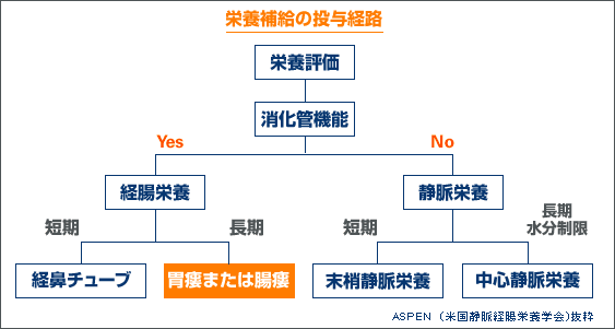 以下の投与経路図はASPEN(米国静脈経腸栄養学会)からの抜粋です。