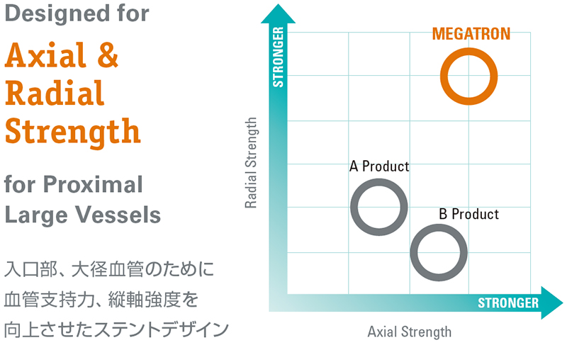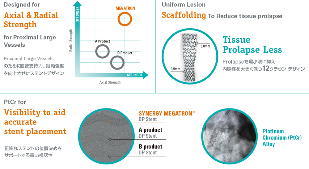 SYNERGY MEGATRON™はLarge Proximal Vesselのために血管支持力、縦軸強度を向上させたDESです。